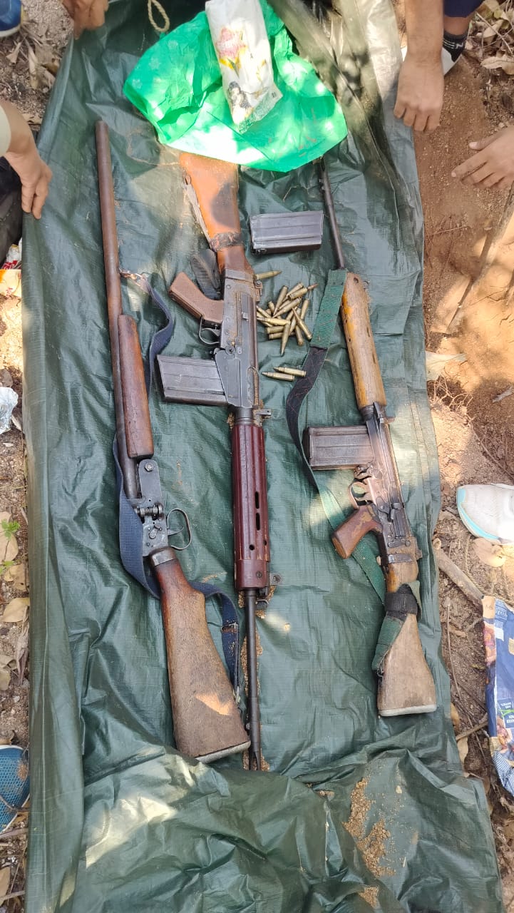 थाना मैनपुर अंतर्गत ग्राम बडेगोबरा के सातमारी पहाडी क्षेत्र में माओवादियों द्वारा डम्प कर रखे 2 एसएलआर, 1 इंसास एवं 1 नग 12 बोर हथियार बरामद