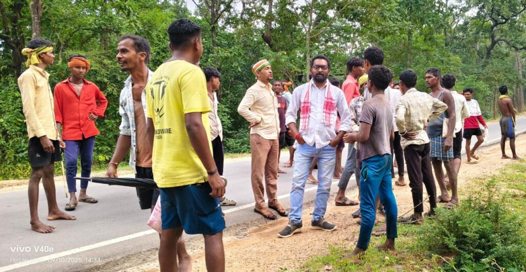 दल से बिछडे हाथी नेशनल हाइवे 130-सी मैनपुर- देवभोग मार्ग पर पहुंचा, 2 घंटे तक सड़क में लगा जाम