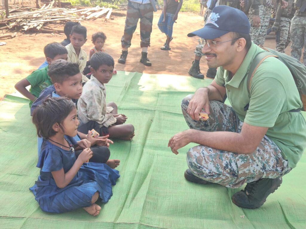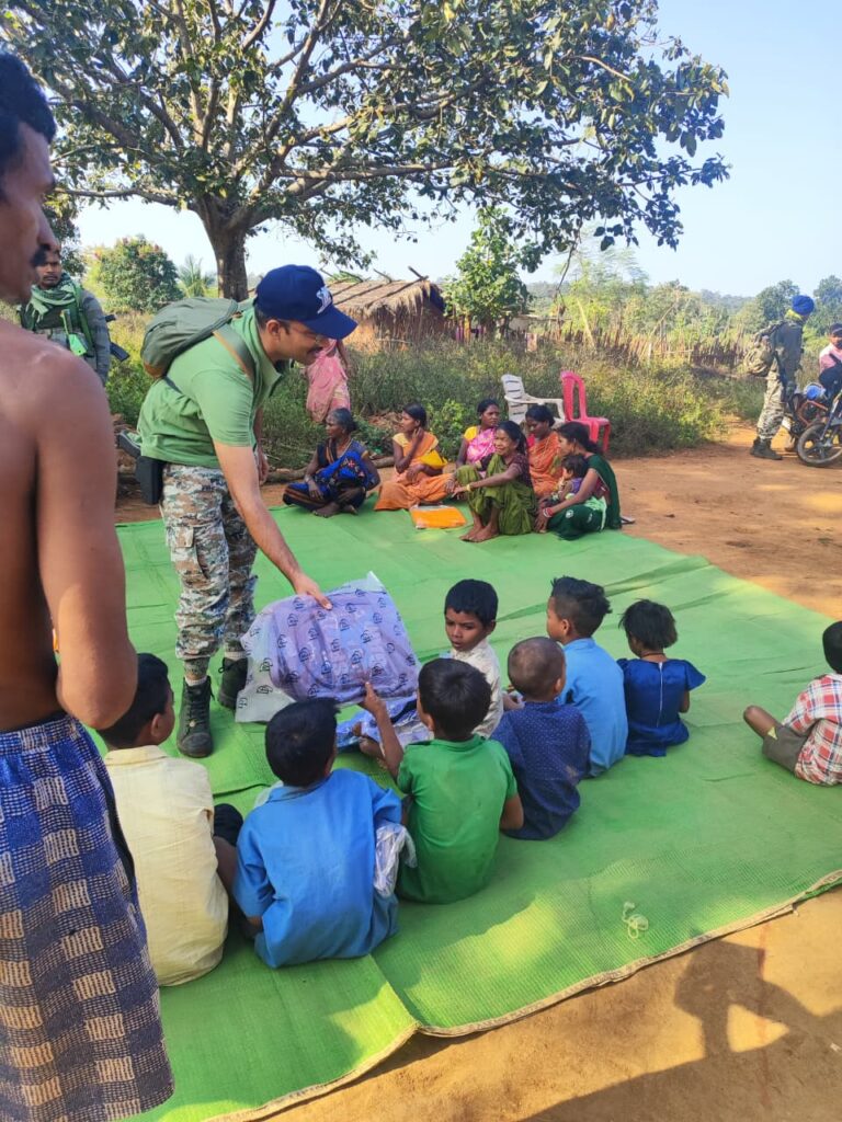 गरियाबंद SP निखिल राखेचा फिर पहुंचे नक्सल प्रभावित क्षेत्र, बच्चों को स्कूल बैग, चप्पल एवं ग्रामीणों को साल व साड़ी वितरण किया