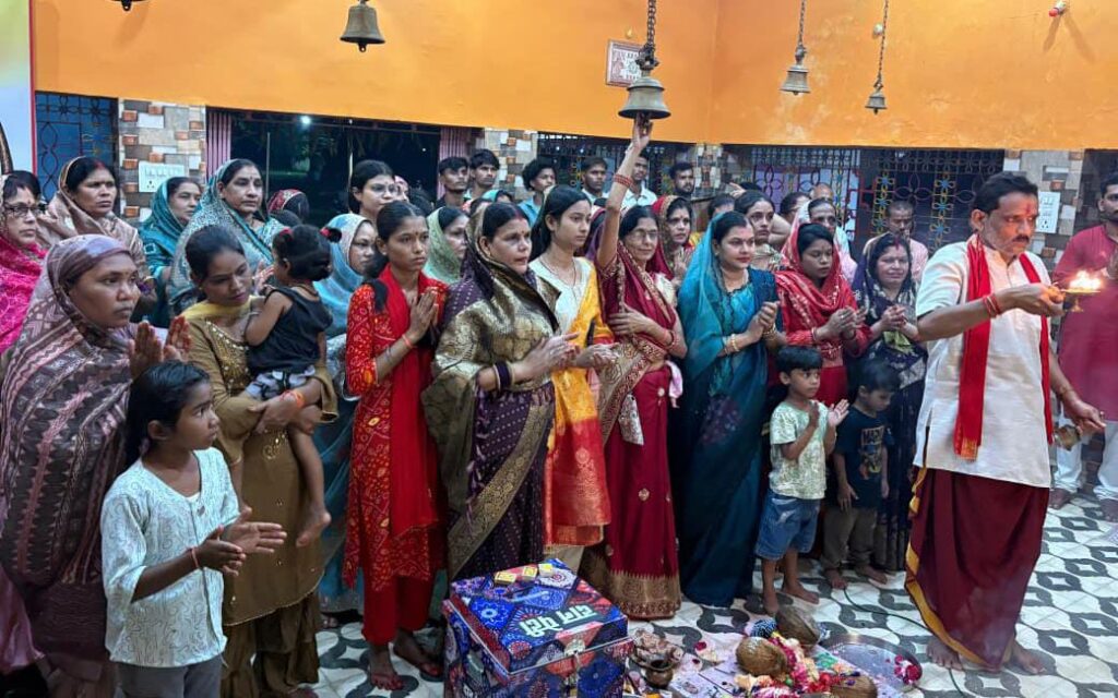 गरियाबंद । तहसील मुख्यालय मैनपुर नगर सहित क्षेत्र के सभी देवी मंदिरों में आज मंगलवार को महाअष्टमी के अवसर पर पूर्णाहूति हवन कार्यक्रम में भक्तों की भारी भीड़ उमड़ पड़ी। सुबह से लेकर संध्या बेला तक चले इस पूर्णाहूति कार्यक्रम में भक्त सपरिवार सुख शांति व खुशहाली के लिए पूजा अर्चना कर हवन में आहूति देकर विधि विधान से नव कन्या भोज कराये गये।