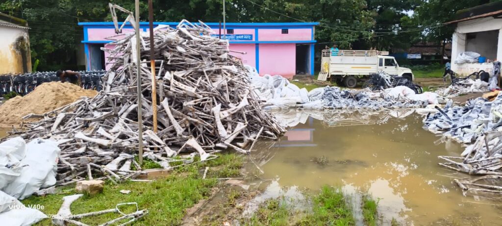 शिक्षा विभाग की लापरवाही – विद्यार्थियों को बांटने वाली साइकिल खुले आसमान के नीचे बारिश में खराब होने की संभावना