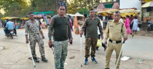 मैनपुर में पुलिस ने निकाला फ्लैग मार्च, होली में शांति व्यवस्था के लिए चौक चौराहों में पुलिसबल तैनात