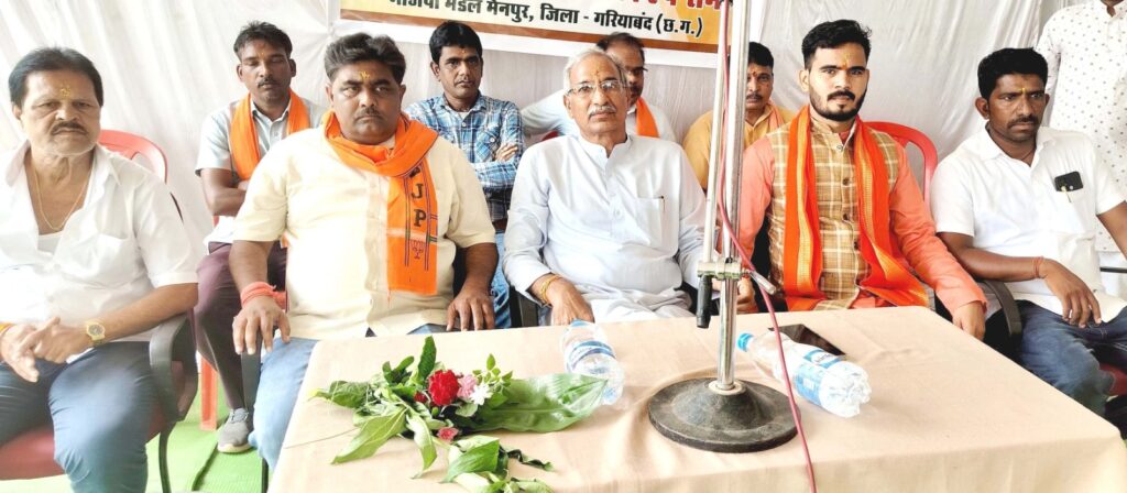 गरियाबंद । प्रधानमंत्री नरेन्द्र मोदी के नेतृत्व में केेन्द्र सरकार के 11 साल पूरे होने पर तहसील मुख्यालय मैनपुर से 11 किमी दूर ग्राम धवलपुर मे आज बुधवार को विकसित भारत के अमृत काल सेवा सुशासन और गरीब कल्याण संकल्प सभा का आयोजन भाजपा मंडल मैनपुर द्वारा किया गया। इस कार्यक्रम मे शामिल होने के लिए पूर्व सांसद एवं छत्तीसगढ़ भण्डार गृह मंडल के अध्यक्ष चंदूलाल साहू एवं भाजपा जिला अध्यक्ष अनिल चन्द्राकर, जिला पंचायत गरियाबंद के अध्यक्ष गौरीशंकर कश्यप पहुंचे तो भाजपा कार्यकर्ताओ ने फूल माला आतिशबाजी कर जोरदार स्वागत किया। इस दौरान पूजा अर्चना कर कार्यक्रम का शुभारंभ किया गया।