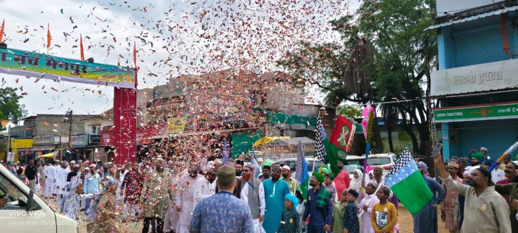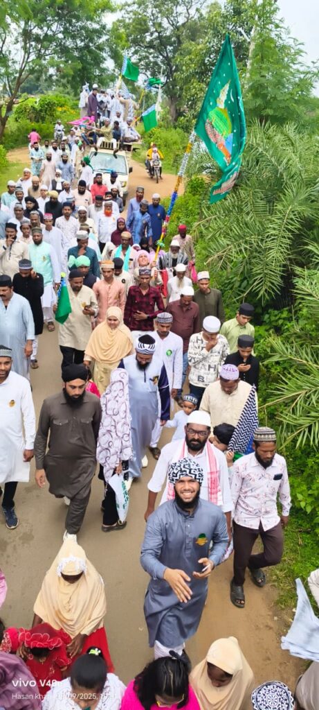 मैनपुर में जश्ने ईद मिलादुन्नबी पर निकाली जुलुस, जश्न 1500 साल जुलूस-ए-मोहम्मदी मुख्य मार्ग से होते हुए मदरसा पहुंचीं