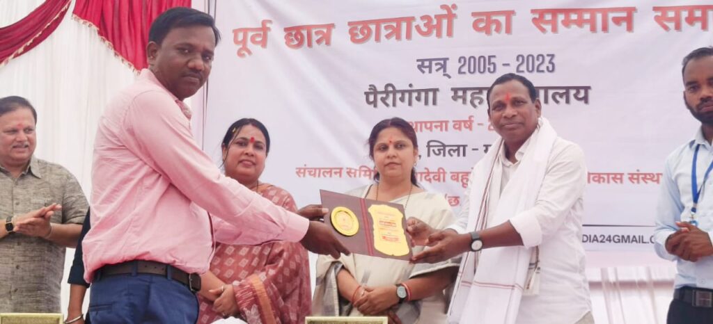 - पैरी गंगा महाविद्यालय में पूर्व छात्र छात्राएं सम्मान समारोह में सांसद एवं विधायक हुए शामिल