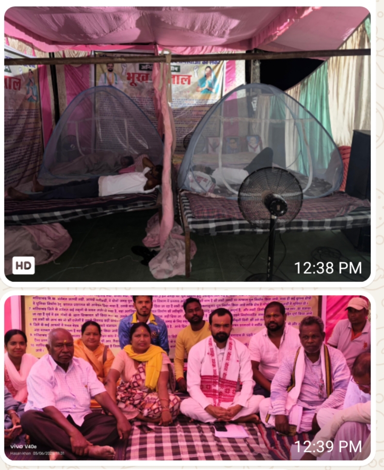 देर शाम तक स्थानीय अफसरो ने समझाने की कोशिश किया लेकिन जबतक मांग पूरा नहीं होगा। भूख हड़ताल जारी रहेगा कहते हुए अपने मांगो पर अड़े हुए हैं। रात पंडाल में ही अपने समर्थकों के साथ गुजारे आज दूसरे दिन गुरूवार को अनवरत भूख हड़ताल जारी है। आज बड़ी संख्या मे लोग भूख हड़ताल के समर्थन में पहुंच रहे हैं। क्षेत्र के मूलभूत समस्या सड़क, बिजली, पेयजल, शिक्षा, स्वास्थ्य, सिंचाई जैसे मांगो को लेकर भूख हड़ताल जारी है।