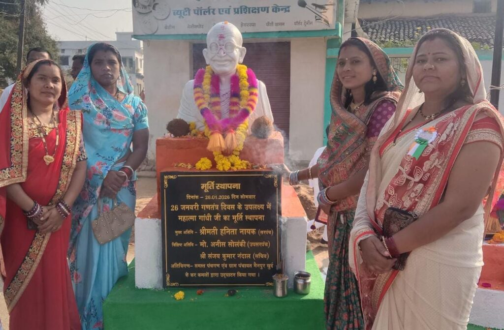 गरियाबंद। तहसील मुख्यालय मैनपुर नगर में पिछले 30 वर्षो से गांधी चौक में राष्ट्रपिता महात्मा गांधी की प्रतिमा लगाने की मांग नगरवासियों द्वारा किया जा रहा था मैनपुर के सरपंच श्रीमति हनिता नायक के विशेष प्रयास से मैनपुर नगरवासियों का यह मांग पुरा हुआ। गणतंत्र दिवस के दिन हजारों छात्र -छात्राओं एवं नगरवासियों की उपस्थिति में महात्मा गांधी की प्रतिमा का अनावरण किया गया। इस दौरान भारत माता की जय, गांधी जी अमर रहे जैसे गगन भेदी नारे लगाये गये।