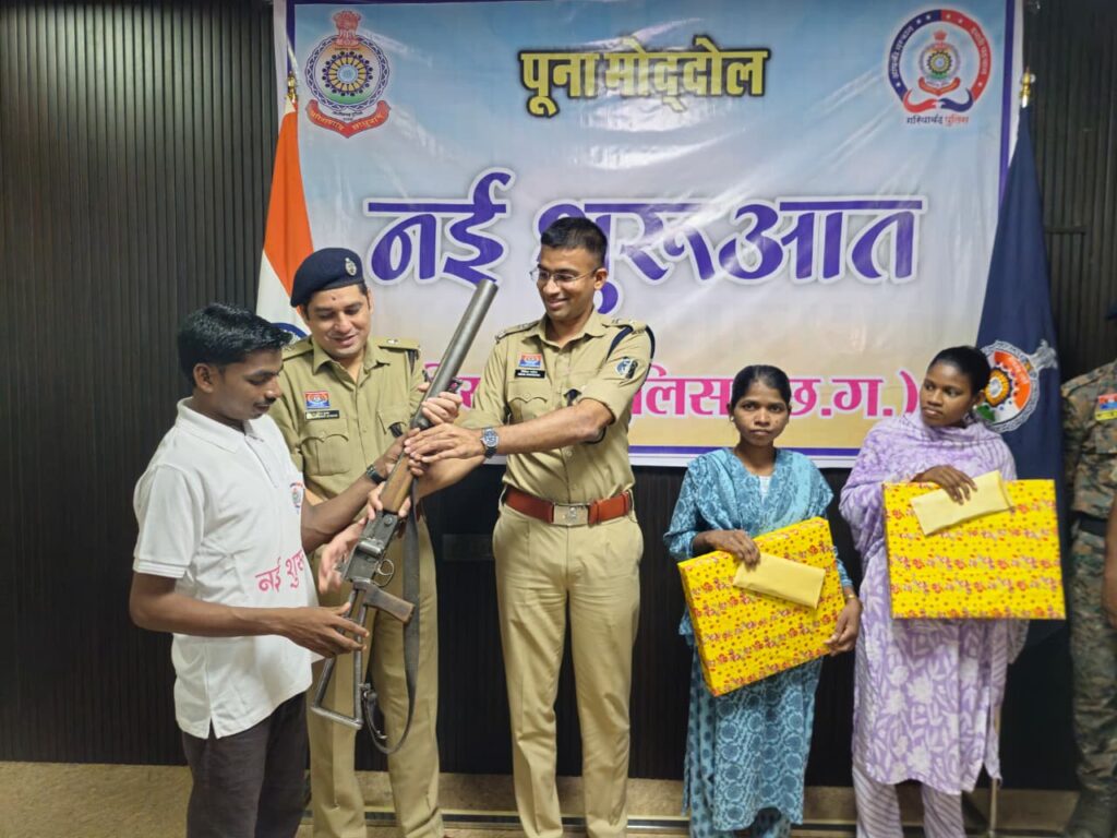 गरियाबंद में तीन ईनामी नक्सलियों ने पुलिस अधीक्षक निखिल राखेचा के सामने आत्मसमर्पण किया
