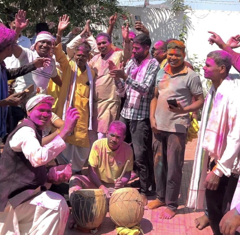 बिन्द्रानवागढ़ MLA जनक ध्रुव ने खुद नगाड़ा बजाकर कार्यक्रम की शुरुआत की, और सबके साथ जमकर थिरके फाग गीत में जमकर गुलाल उड़ाते रहे।