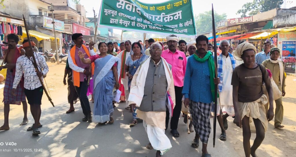 गरियाबंद। गरियाबंद जिले के आदिवासी विकासखण्ड मैनपुर क्षेत्र से विशेष पिछड़ी कमार भुंजिया जनजाति के सैकड़ों ग्रामीण अपनी मूलभूत समस्याओं के समाधान के लिए 10 नवम्बर को तहसील मुख्यालय मैनपुर से पदयात्रा कर राजधानी रायपुर पहुंच राज्यपाल को ज्ञापन सौंपने, नारेबाजी करते पैदल निकले थे। लगभग 65 किमी की पदयात्रा तय भी कर लिये थे। गरियाबंद जिले के कलेक्टर भगवान सिंह उइके ने पदयात्रा कर रहे ग्रामीणों से बारूका कचनाधुरवा के पास मुलाकात उन्हे आश्वासन दिया कि उनके प्रतिनिधि मंडल को राज्यपाल से मुलाकात करवाया जायेगा। उनके समस्याओ के समाधान के लिए शासन प्रशासन स्तर में लगातार कार्यवाही की जा रही है।