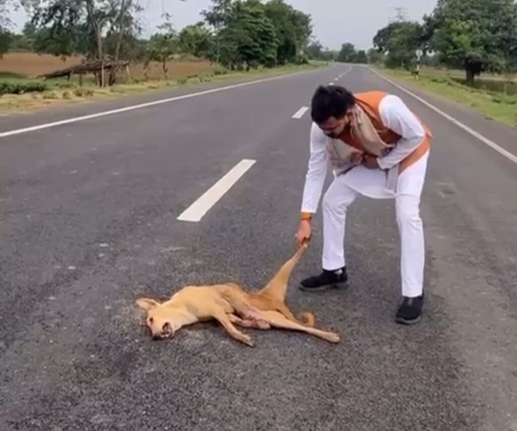 जब जिला पंचायत अध्यक्ष गौरीशंकर कश्यप ने मानवता का मिशाल पेश कर लग्जरी कार से उतरकर सड़क पर मरे हुए कुत्ते को अपने हाथों से हटाया