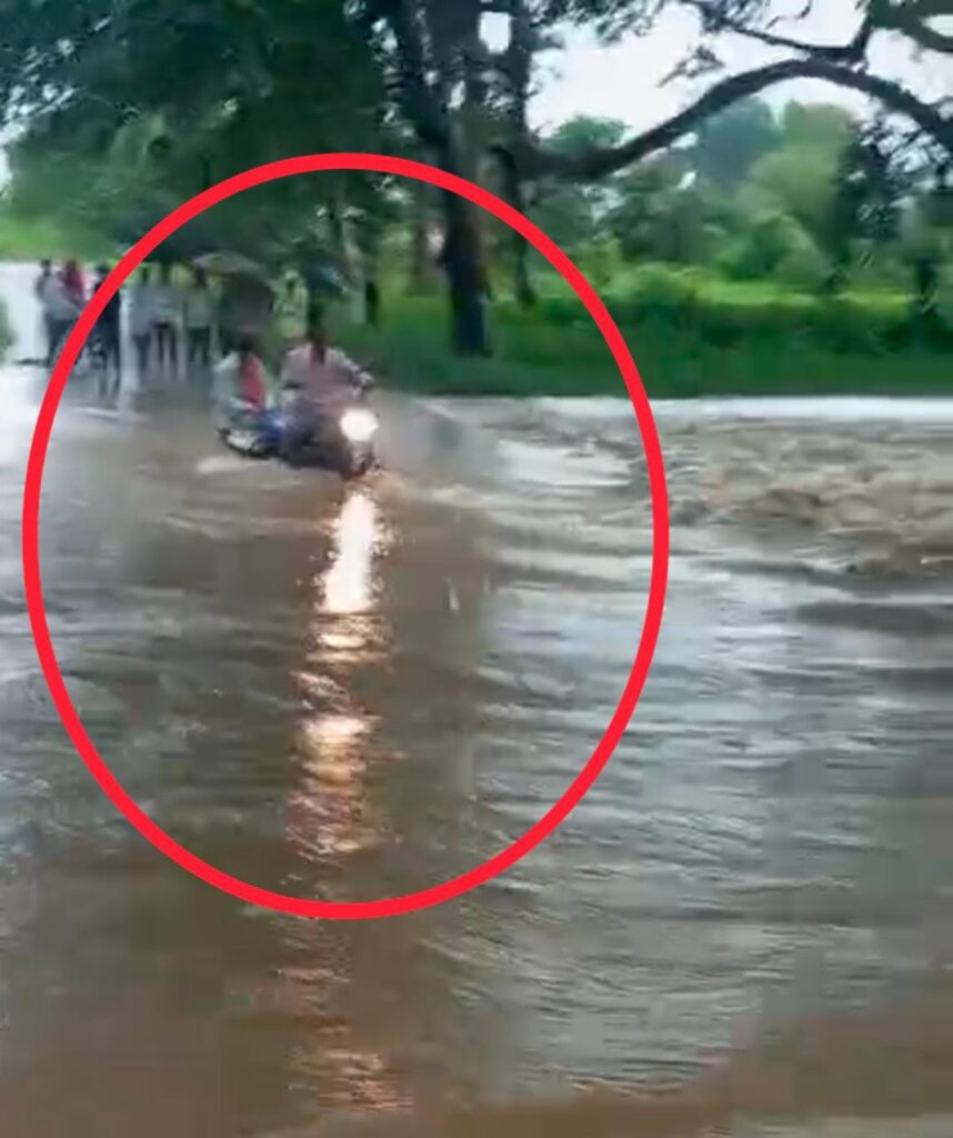 गनीमत रही कि युवक तैर कर बाहर आ गया, नही तो जान भी जा सकती थी। यह घटना पठार सिंगपुर के बीच बेन्द्रा चुवा नाला का है। बताया जा रहा है कि 15 सितंबर को क्षेत्र में भारी बारिश से पानी रपटा के ऊपर से बह रहा था, जिसे पार करते समय युवक मोटरसाइकिल सहित बह गया, जिसका वीडियो भी सामने आया है।